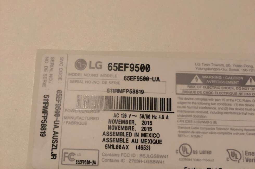 TV Repair for LG 65EF9500-UA. Image issues, stuck in color pattern mode. Visit our TV repair page for more info. Schedule an appointment today for an estimate. We fixed this TV by replacing the mainboard due to a faulty IC. Contact us today.