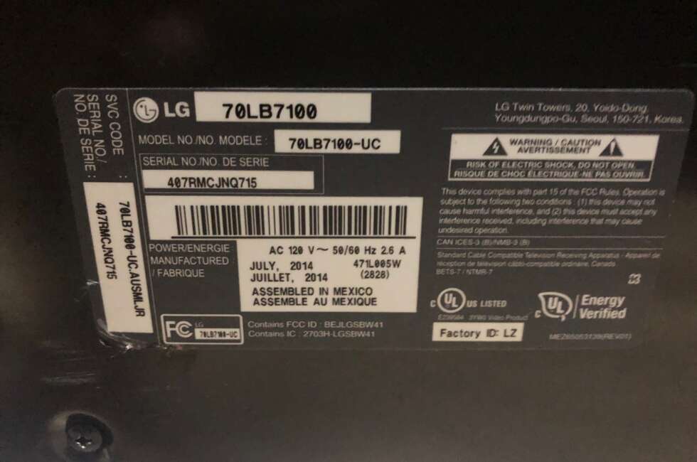 TV Repair for LG 70LB7100-UC. Turned on but no audio and no video. Visit our TV repair page for more info. Schedule an appointment today for an estimate. We fixed this TV by replacing the mainboard. Contact us today.