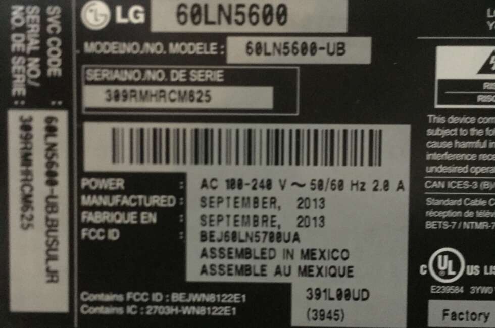 TV Repair: LG 60LN5600-UB. Audio but no picture. Visit our TV repair page for more info. Schedule an appointment today for an estimate. We fixed this TV by replacing the LED strips. Contact us today.