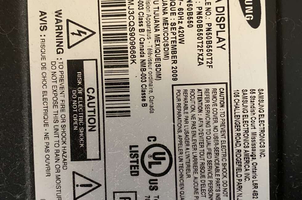 TV Repair for Samsung PN50B550T2FXZA. Samsung TV showed no signs of life. Visit our TV repair page for more info. Schedule an appointment today for an estimate. We fixed this TV by replacing the power supply unit. Contact us today.